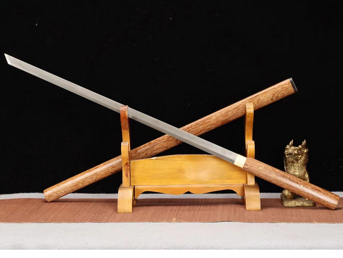 商品参数 总长:101cm 刃长:72cm 柄长:26cm 刃宽:3.2cm 刃厚:0.7cm 硬度:60HRC 刃材:大马士革钢 鞘材:花梨木 柄材:花梨木 锻打程度:十四道纯手工研磨 重量:1.35kg