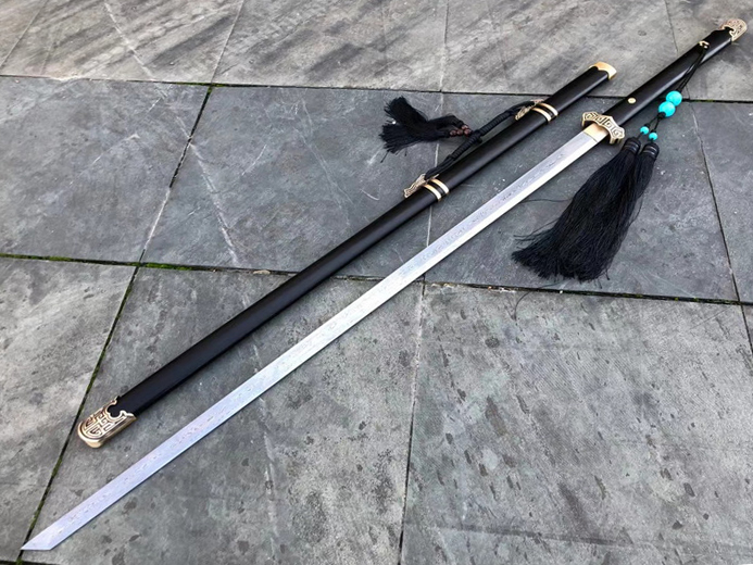 商品属性 [总长] 135cm [刃长] 97cm [刃宽] 3.2cm [刃厚] 0.75cm [硬度] 59HRC [刃材] 花纹钢 [鞘材] 乌木 [柄材] 乌木 [装具] 纯铜 [工艺] 淬火(盐水)—回火 [锻打程度] 十三道纯手工研磨 [赠品] 锦盒-刀油-收藏证书-刀架