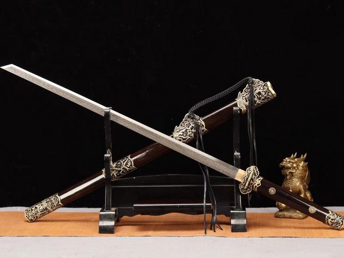 商品属性 [总长] 103cm [刃长] 72cm [柄长] 27cm [刃宽] 3.2cm [刃厚] 0.7cm [硬度] 60HRC以上 [刃材] 百炼钢 [鞘材] 黑檀木 [柄材] 黑檀木 [装具] 铜装 [工艺] 淬火(盐水)—回火 [锻打程度] 十五道纯手工研磨+上研 [赠品] 锦盒-刀油-收藏证书-刀架 [重量] 全重1.65kg,净重0.75kg
