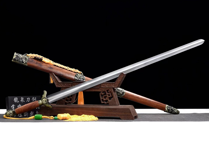 商品参数 总长:90cm 刃长:70cm 刃宽:3.3cm 刃厚:0.5cm 刃材:高级不锈钢 鞘材:酸枝木 装具:铜锌合金 赠品:锦盒-刀油-收藏证书-刀架 重量:全重1.15kg
