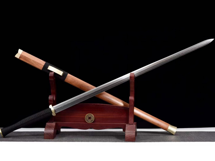 商品属性 [总长] 103cm [刃长] 77cm [柄长] 23cm [刃宽] 3.2cm [刃厚] 0.6cm [硬度] 60HRC [刃材] 百炼钢 [鞘材] 酸枝木 [装具] 铜装 [工艺] 淬火(盐水)—回火 [锻打程度] 十三道纯手工研磨 [赠品] 锦盒-刀油-收藏证书-刀架 [重量] 全重1.33kg,去鞘0.85kg