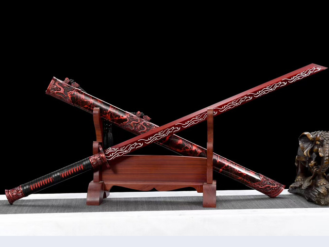 商品参数 总长:112cm 刃长:73cm 刃宽:3.7cm 刃厚:0.5cm 硬度:57HRC 刃材:锰钢 鞘材:实木包皮革 装具:合金 赠品:锦盒-刀油-收藏证书-刀架 重量:1.9kg