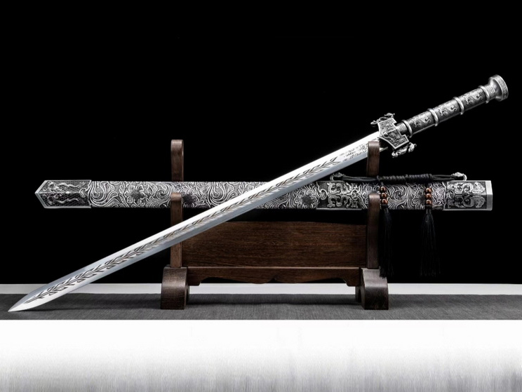 商品参数 总长:105cm 刃长:73cm 柄长:22cm 刃宽:3.9cm 刃厚:0.5cm 硬度:58HRC 刃材:锰钢 鞘材:实木包皮革 装具:合金 重量:1.95kg