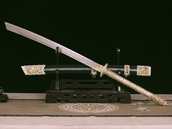 商品属性 [总长] 116cm [刃长] 70cm [柄长] 40cm [刃厚] 0.7cm [硬度] 60HRC以上 [刃材] 毛铁草钢 [鞘材] 顶级魔鬼鱼皮 [装具] 铜鎏金鎏银 [工艺] 覆土烧刃—回火 [锻打程度] 十五道纯手工研磨+上研 [赠品] 高档木制锦盒-刀油-收藏证书-刀架 [重量] 3kg