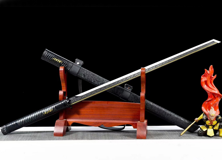商品参数 总长:104cm 刃长:68cm 柄长:30cm 刃宽:3.2cm 刃厚:0.5cm 刃材:高碳钢 鞘材:实木包皮革 装具:合金 赠品:锦盒-刀油-收藏证书-刀架 重量:1.2kg