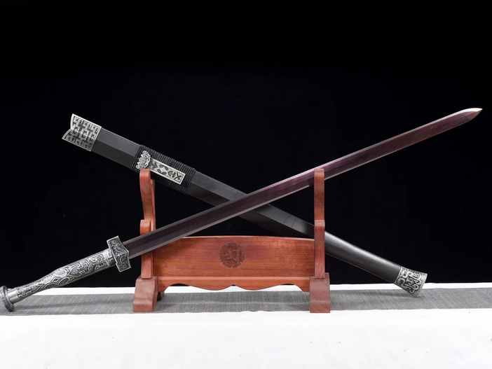 商品属性 [总长] 106cm [刃长] 76cm [柄长] 22.5cm [刃宽] 3.5cm [刃厚] 0.7cm [硬度] 60HRC [刃材] 百炼钢扭转纹 [鞘材] 乌木 [装具] 银装 [工艺] 淬火(盐水)—回火 [锻打程度] 十三道纯手工研磨 [赠品] 锦盒-刀油-收藏证书-刀架 [重量] 2.1kg