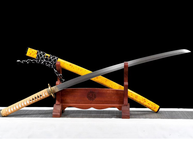 总长:103cm、刃长:72cm柄长:26cm刃宽:3.2cm刃厚:0.7cm硬度:60HRC刃材:大马士革钢鞘材:原木油漆鞘装具:铜装工艺:淬火(盐水)—回火锻打程度:十三道纯手工研磨赠品:锦盒-刀油-收藏证书-刀架重量:1.25kg![]()
