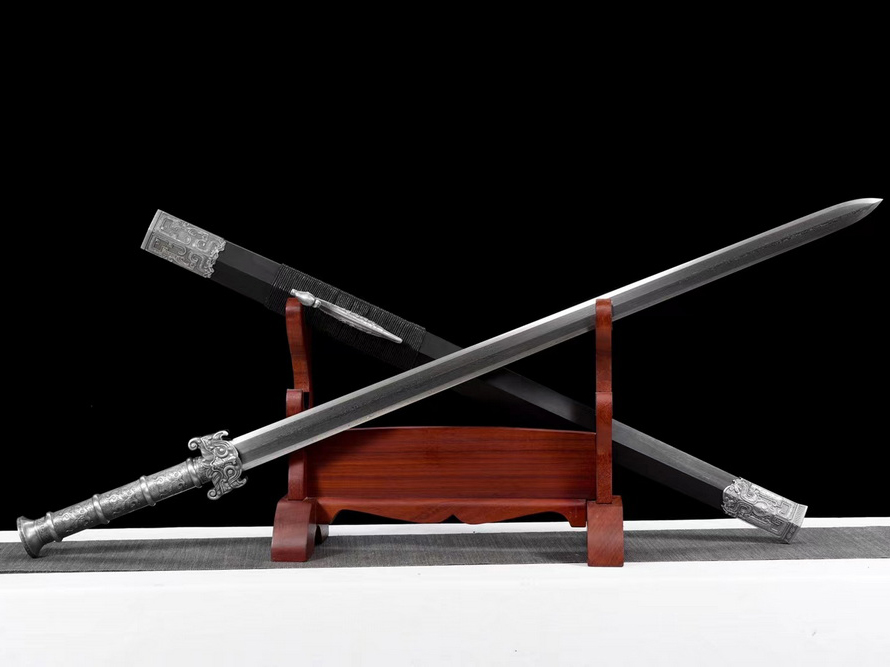 商品属性 [总长] 106cm [刃长] 75cm [柄长] 26cm [刃宽] 3.8cm [刃厚] 0.8cm [硬度] 60HRC [刃材] 百炼钢 [鞘材] 乌木 [装具] 镀银 [工艺] 淬火(盐水)—回火 [锻打程度] 十三道纯手工研磨 [赠品] 锦盒-刀油-收藏证书-剑架 [重量] 2.4kg去鞘1.4kg