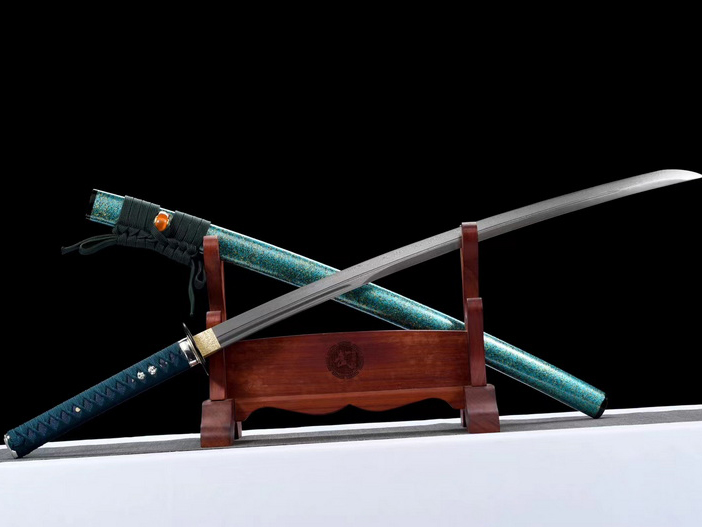 商品属性 [总长] 103cm [刃长] 71cm [柄长] 26cm [刃宽] 3.2cm [刃厚] 0.7cm [硬度] 60HRC [刃材] 百炼钢 [鞘材] 原木油漆鞘 [装具] 铁制品 [工艺] 淬火(盐水)—回火 [锻打程度] 十三道纯手工研磨 [赠品] 锦盒-刀油-收藏证书-剑架 [重量] 1.28kg