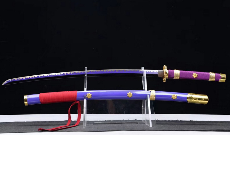 商品属性 [总长] 103cm [刃长] 72cm [柄长] 26cm [刃宽] 3.2cm [刃厚] 0.7cm [硬度] 58HRC [刃材] 锰钢 [鞘材] 原木油漆鞘 [装具] 合金-黄铜 [锻打程度] 十三道纯手工研磨 [赠品] 锦盒-刀油-收藏证书-剑架 [重量] 1.4kg 去鞘1.1kg