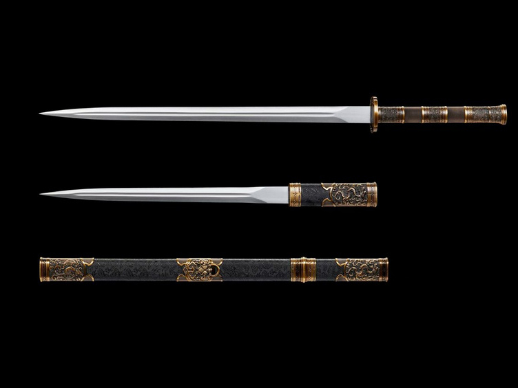 商品参数 【刃材】:高锰钢 【全长】:106cm 【刃宽】:3.7 cm 【最宽处】 【刃厚】:0.5 cm 【长款刃长】:72 cm 【短款刃长】: 53 cm 【长款柄长】:28 cm 【短款柄长】: 18 cm 【长款除鞘重】:0.9Kg 【短款除鞘重】:0.65Kg 【总重约】:1.9Kg 【鞘材】:实木包绸缎鞘 【手柄】:合金一体金属柄 【适合】收藏 防身 情侣配送 乔迁送礼 武术健身 精美摆设