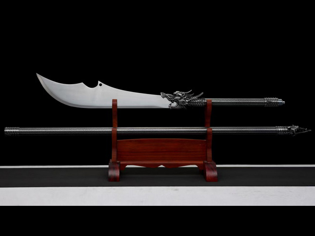 商品参数 【刃材】:极限锰钢现代工艺、 【全长】:196cm 【刃长】:50cm 【柄长】:146 【刃宽】:10cm 【刃厚】:0.5cm 【总重约】:2.88Kg 【装具】:锌合金 【手柄】:不锈钢烤漆 【适合】收藏 情侣配送 乔迁送礼 武术健身 精美摆设