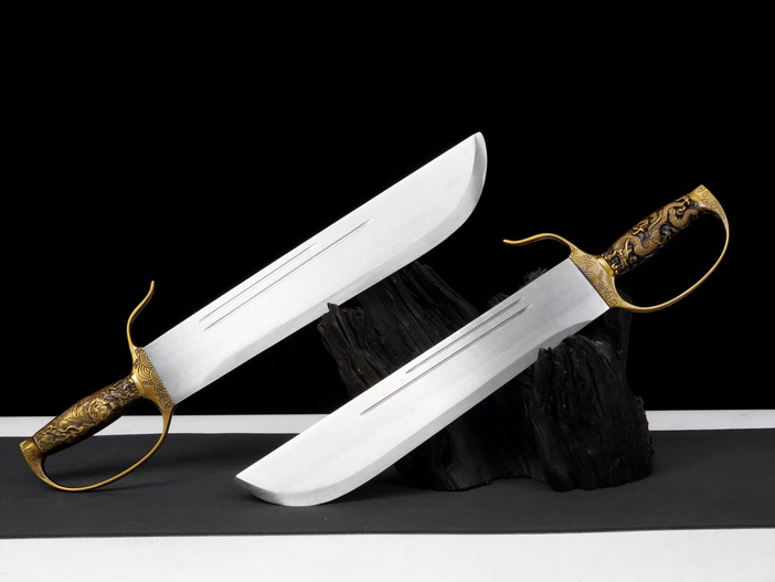 商品参数 【刃材】:极限锰钢现代工艺、 【全长】:48cm 【刃长】:34cm 【柄长】:14cm 【刃宽】:5.5cm 【刃厚】:0.4cm 【总重约】:3Kg 【装具】:锌合金 【手柄】:锌合金 【适合】收藏 情侣配送 乔迁送礼 武术健身 精美摆设