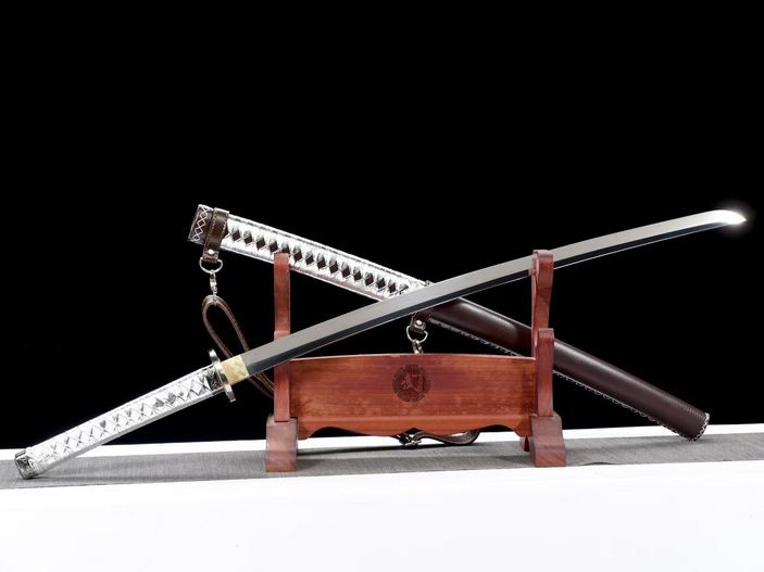 商品参数 高亮度镜面工艺锋钢武士刀 高性能锋钢锻打韧性弯曲90度不变形,硬度高达60°砍铁不伤刃,带鞘全长103厘米,刃长71厘米,柄长26.5厘米,刃宽3.2厘米,带鞘重1.36千克。刀身手工锻打超高亮镜面抛光,锌合金僵尸刀套装,实木外包皮套刀鞘【可背式】》