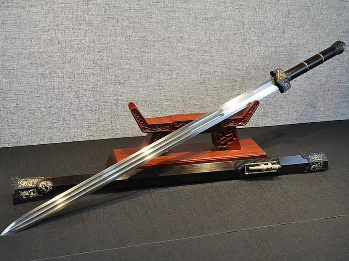 总长:108cm刃长:76cm柄长:25cm刃宽:3.5cm刃厚:0.8cm硬度:59HRC刃材:花纹钢鞘材:黑檀木柄材:黑檀木装具:纯铜工艺:强烧高温热处理-回火锻打程度:十四道纯手工研磨赠品:锦盒-刀油-收藏证书-刀架![]()