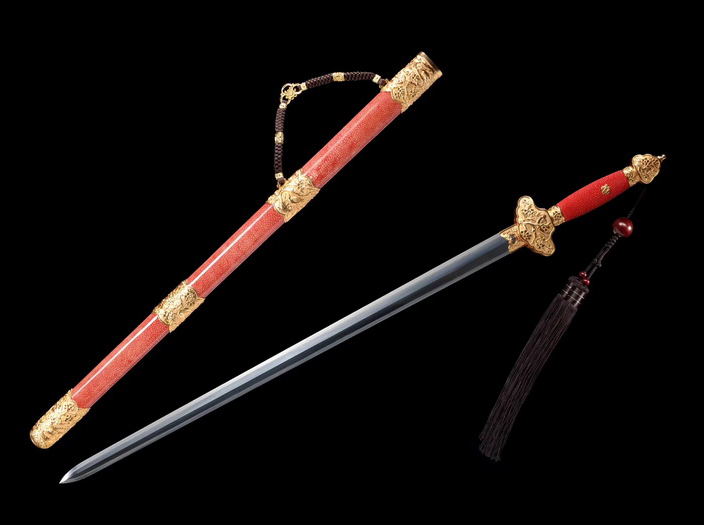 总长:103cm刃长:75cm柄长:19cm刃宽:3.5cm刃厚:0.85cm硬度:60HRC以上刃材:百炼钢柄材:珍珠鱼皮装具:黄铜镀金工艺:淬火(油)—回火锻打程度:十六道纯手工研磨+上研赠品:高档木制锦盒-刀油-收藏证书-刀架![]()