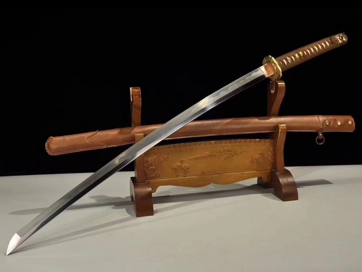 总长:100cm刃长:71cm刃宽:3.2cm刃厚:0.7cm硬度:60HRC以上刃材:百炼钢刃表面:精磨上研鞘材:铁装柄材:珍珠鱼皮装具:黄铜镀金工艺:覆土烧刃—回火锻打程度:十五道纯手工研磨+上研赠品:高档木制锦盒-刀油-收藏证书-刀架![]()
