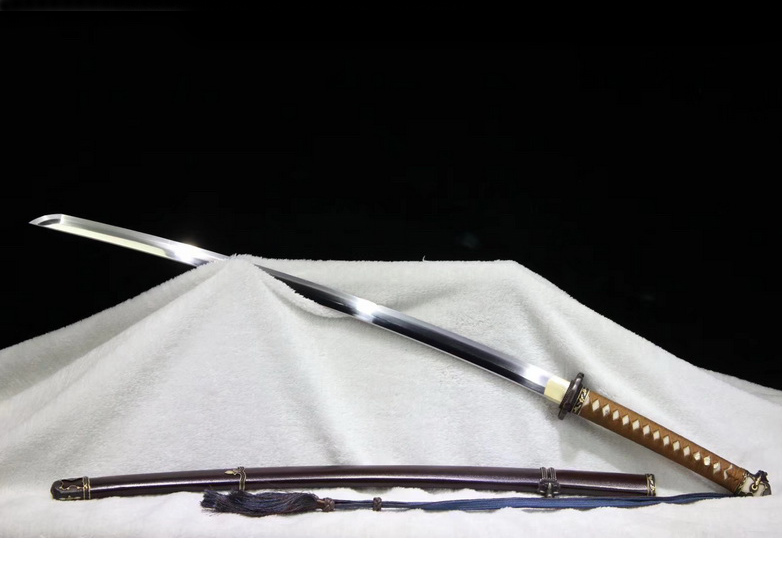 总长:102cm刃长:71cm柄长:29cm刃宽:3.2cm刃厚:0.75cm硬度:60HRC以上刃材:百炼钢刃表面:精磨上研鞘材:铁装柄材:珍珠鱼皮装具:铜鎏金鎏银工艺:覆土烧刃—回火锻打程度:十六道纯手工研磨+上研赠品:锦盒-刀油-收藏证书-刀架-刀袋![]()