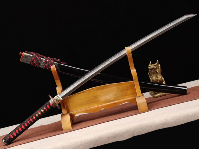 商品属性 [总长] 102CM [刃长] 73.4CM [刃厚] 0.7cm [硬度] 60HRC以上 [刃材] 自炼钢 [鞘材] 半包鱼皮 [柄材] 珍珠鱼皮 [装具] 铜鎏金鎏银 [工艺] 覆土烧刃—回火 [锻打程度] 十五道纯手工研磨+上研 [赠品] 锦盒-刀油-收藏证书-刀架 [重量] 1.6KG